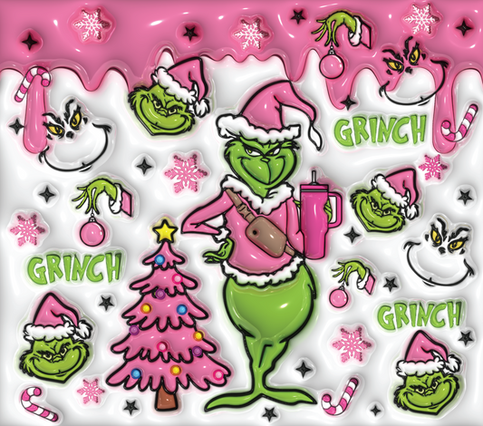 Pink grinch 20oz skinny sublimation transfer
