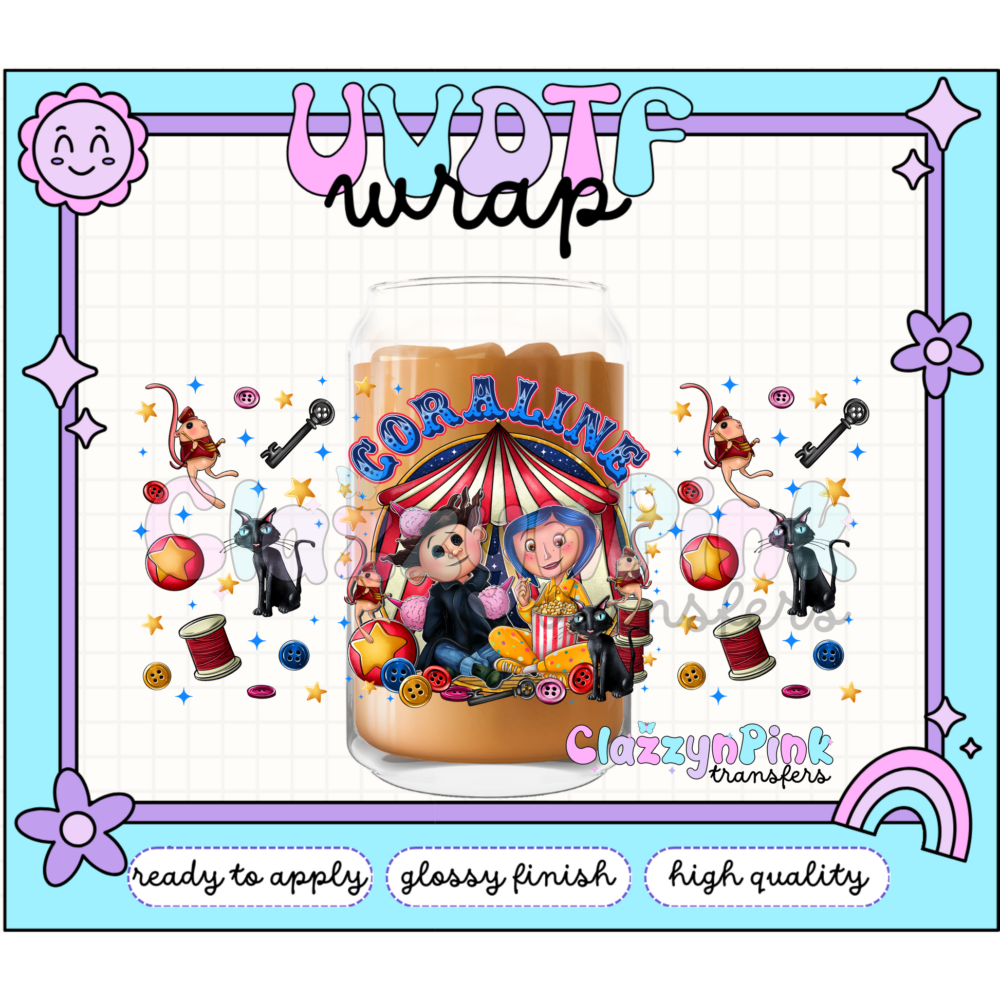 UVDTF cup wrap is sized for 16oz Libby cup.