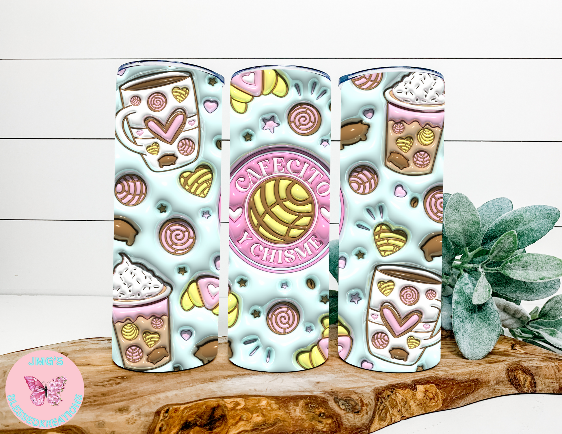 Cafecito Y Chisme Pink and teal 20 oz sublimation transfer